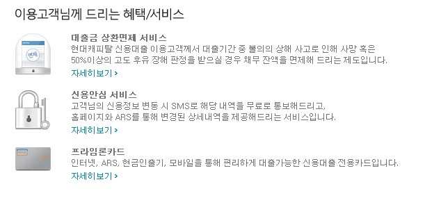 강점: 편안한 진행, 믿을수 있는 대기업산하 국내1위 캐피탈사. 각종 편의서비스인 직장인 신용대출 최강